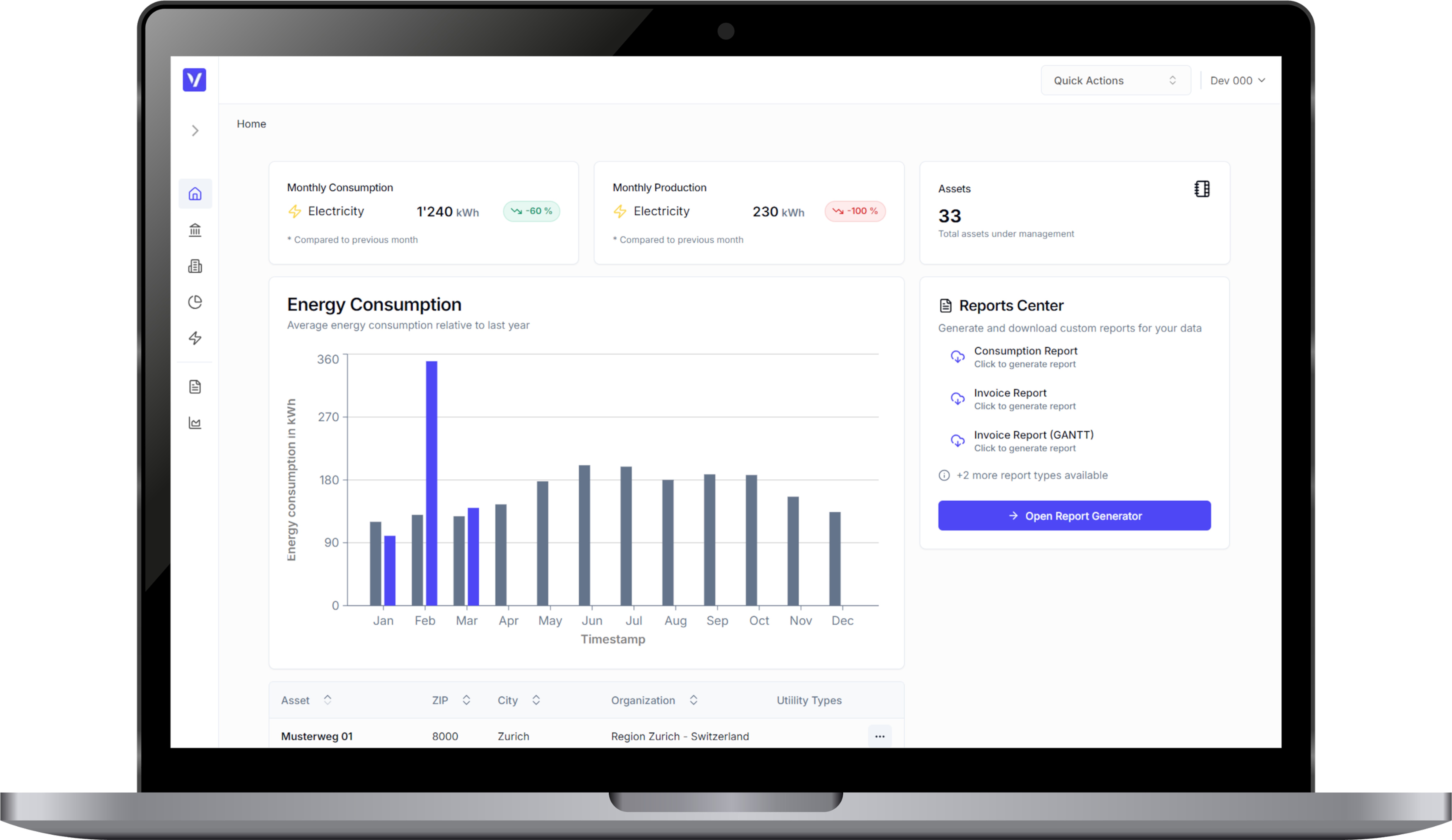 A key component was the deep integration with HIAG’s ERP system. By securely accessing relevant asset and financial data within clearly defined governance guardrails, Anevo ensured precise allocation of consumption data to the correct properties and reporting structures. This eliminated manual mapping and reduced error risks.